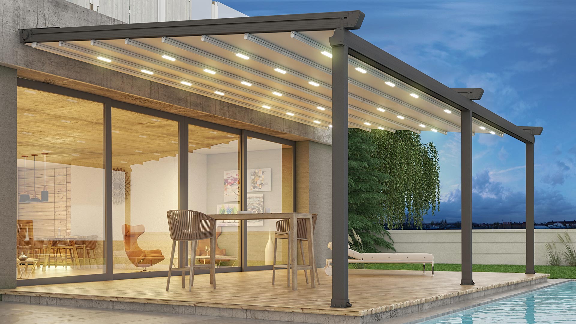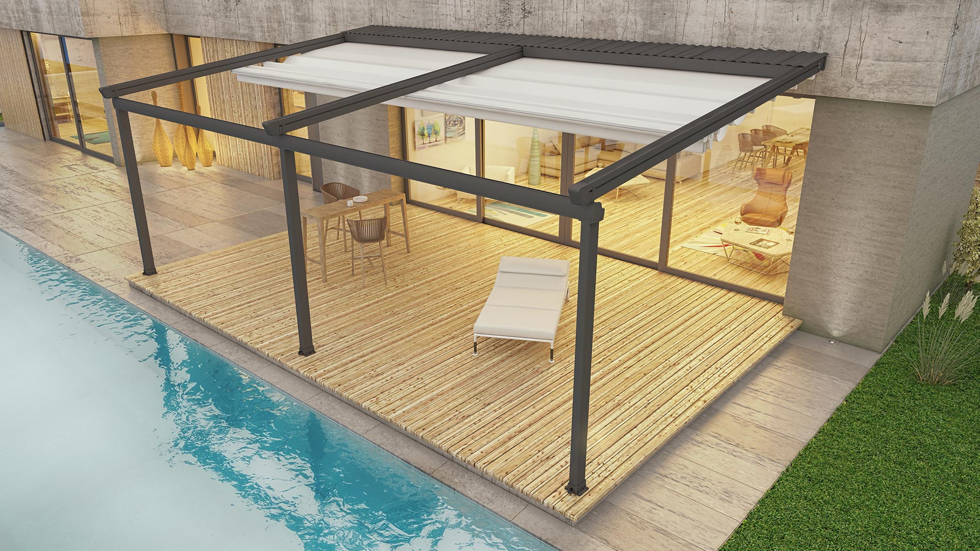 Systémy skládacích pergol Proplain® architect umožňují využití volných ploch proti povětrnostním vlivům a používají se s dálkovým ovládáním.